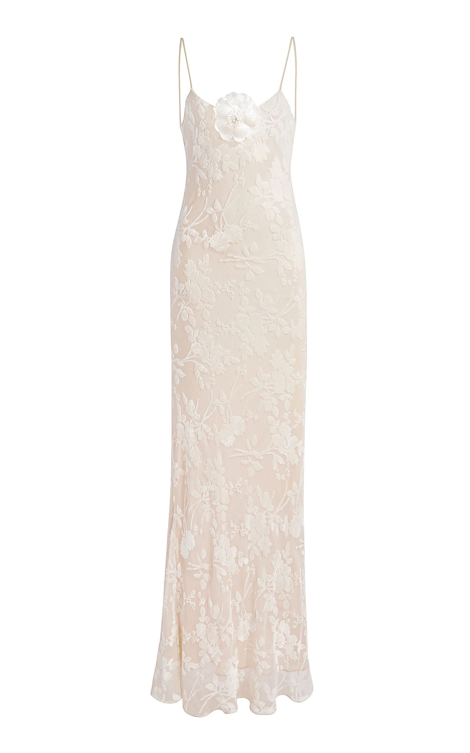 Floral Silk-Devoré Slip Gown neutral
