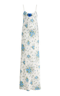 Floral Silk Slip Gown white