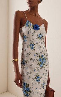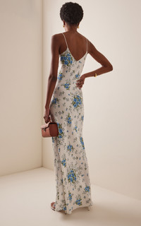 Embellished floral-print silk-satin maxi dress Blue