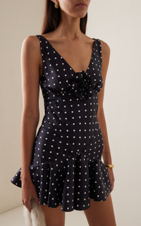 Embellished Polka-dot Silk-twill Mini Dress