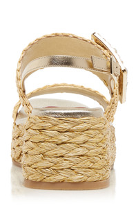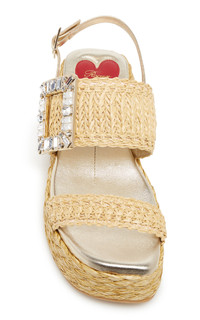 Founded by the creator of the stiletto, the French heritage house boasts an illustrious legacy that Creative Director Gherardo Felloni continues to uphold today. Crafted from woven raffia, these sandals have a dual-strap design set atop a chunky platform sole and decored with an oversized crystal buckle for a glamorous, signature touch. PRODUCT DETAILS - Platform height measures approximately 60mm/ 2.35" - Buckle fastening - Composition: raffia - Made in Italy