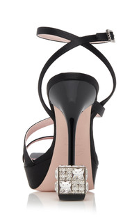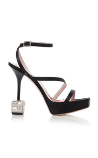 Cube Strass Heel Sandals in Satin
