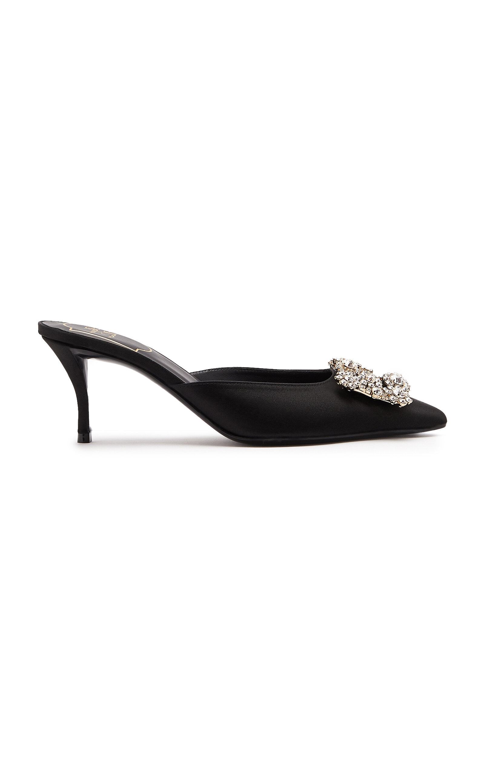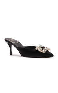 Founded by the creator of the stiletto, the French heritage house boasts an illustrious legacy that Creative Director Gherardo Felloni continues to uphold today. The 'Efflorescence' mule is sleek, sharply-pointed, and punctuated with a crystal-flower strass buckle along its toe. PRODUCT DETAILS - Heel measures approximately 65mm / 2.5" - Slip on - Composition: satin - Made in Italy