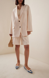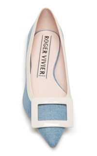 Founded by the creator of the stiletto, the French heritage house boasts an illustrious legacy that Creative Director Gherardo Felloni continues to uphold today. Crafted from medium-wash denim, these ballet flats have a pointed-toe silhouette adorned with patent leather trim and a strass buckle detail—a signature of the label. PRODUCT DETAILS - Slip on - Composition: 100% cotton - Made in Italy