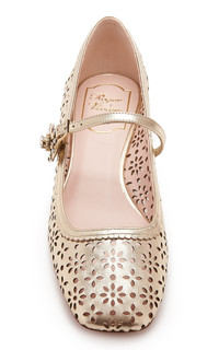 New Tres Vivier Perforated Leather Mary Jane Pumps gold