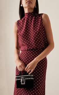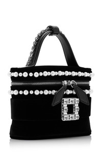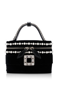 Founded by the creator of the stiletto, the French heritage house boasts an illustrious legacy that Creative Director Gherardo Felloni continues to uphold today. Delightfully compact, this small vanity bag is crafted from plush velvet into a structured, top handle silhouette that maintains its shape overtime. The crystal-embellished buckle accompanied by pearl embroidery adds a signature, glamorous touch. PRODUCT DETAILS - Zip fastening - Composition: velvet, pearls - Made in Italy