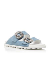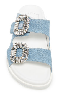 Founded by the creator of the stiletto, the French heritage house boasts an illustrious legacy that Creative Director Gherardo Felloni continues to uphold today—and which you can now secure for the first time on Moda. Find celebrated signatures—from the brand’s square-shaped buckle emblem to the “Choc” heel, a nearly-gravity-defying style that arches inwards and was first designed by Monsieur Vivier in 1959. Made of denim, the 'Slidy Viv' sandals meld a casual silhouette with elegant details, featuring a dual toe straps adorned with crystal embellished silver-tone buckles. Wear yours anywhere, from running errands to grabbing dinner with friends. PRODUCT DETAILS - Slip on - Composition: denim - Made in Italy