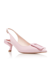 Virgule Buckle-Embellished Patent Leather Slingback Pumps pink