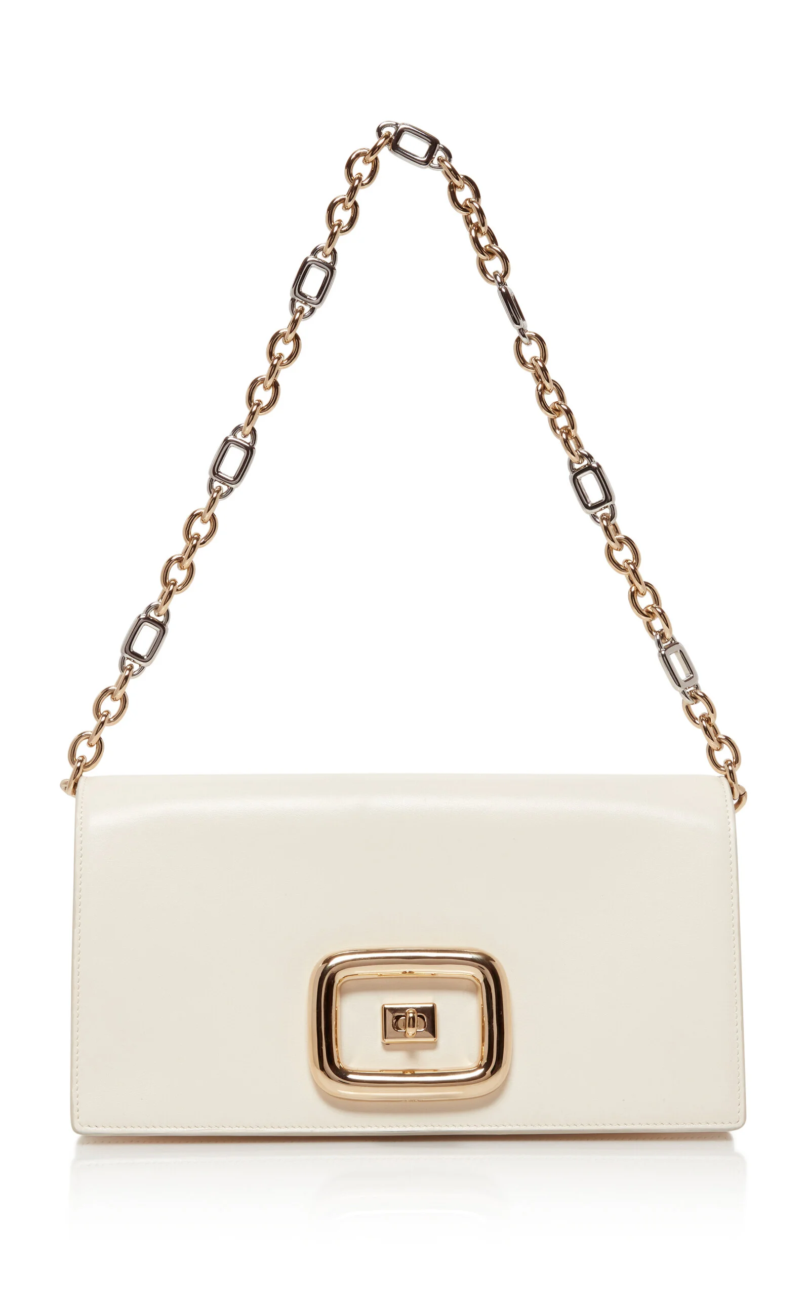 Founded by the creator of the stiletto, the French heritage house boasts an illustrious legacy that Creative Director Gherardo Felloni continues to uphold today—and which you can now secure for the first time on Moda. Alongside celebrated signatures—from the brand’s square-shaped buckle emblem to the “Choc” heel, a nearly-gravity-defying style that arches inwards and was first designed by Monsieur Vivier in 1959—find standouts from the Fall ’23 collection. PRODUCT DETAILS - Elongated shoulder bag silhouette, leather body, gold-tone buckle detailing and chain-link strap, adjustable shoulder strap, pleating at sides, fully lined - Turn lock fastening - Composition: calf leather - Made in Italy SIZE & FIT - This item measures approximately 6 x 10.25 x 2.35"