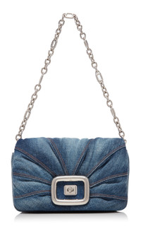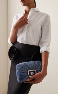 Founded by the creator of the stiletto, the French heritage house boasts an illustrious legacy that Creative Director Gherardo Felloni continues to uphold today—and which you can now secure for the first time on Moda. Find celebrated signatures—from the brand’s square-shaped buckle emblem to the “Choc” heel, a nearly-gravity-defying style that arches inwards and was first designed by Monsieur Vivier in 1959. Crafted from denim lined with nappa leather, the 'Viv Choc Me' clutch has an elegantly gathered design punctuated with a silver-tone buckle encasing its turn-lock fastening. Carry yours in hand or on the shoulder with the chain-link strap. PRODUCT DETAILS - Turn lock fastening - Composition: denim, lining: nappa leather - Made in Italy