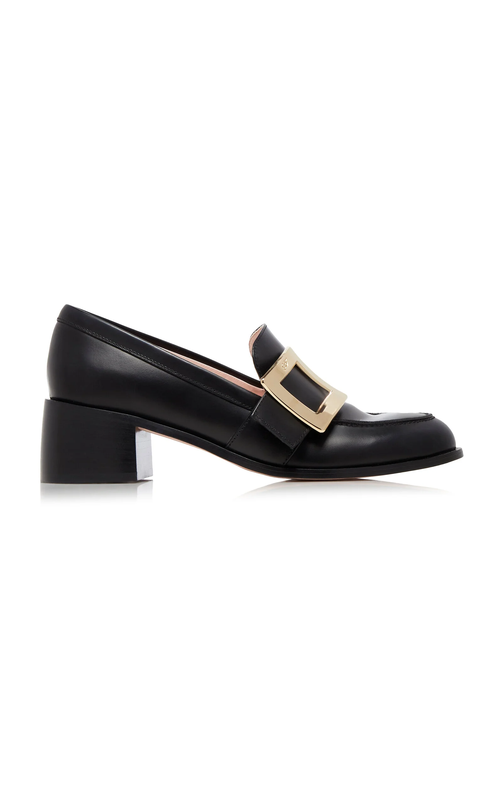 Founded by the creator of the stiletto, the French heritage house boasts an illustrious legacy that Creative Director Gherardo Felloni continues to uphold today—and which you can now secure for the first time on Moda. Find celebrated signatures—from the brand’s square-shaped buckle emblem to the “Choc” heel, a nearly-gravity-defying style that arches inwards and was first designed by Monsieur Vivier in 1959. Crafted in Italy from semi-matte leather, the 'Viv Rangers' loafers have a sophisticated silhouette with chunky soles and an exaggerated, gold-tone buckle—a signature detail. Wear yours with tights and mini hemlines for posh statement dressing. PRODUCT DETAILS - Heel height measures approximately 55mm / 2.15" - Slips On - Composition: nappa leather - Made in Italy