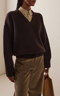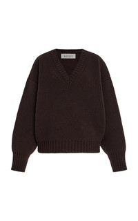 Amsterdam-based atelier Rohe offers exceptionally crafted staples in pair-with-anything neutrals that are as well-constructed as they are timeless. To guarantee this wardrobe staple, the label constructs this sweater from a heavy, compact knit with wide ribbing. The fit is oversized with balloon sleeves and a neat V-neck. Style with tonal hues. PRODUCT DETAILS - Fall/Winter ‘25 - Slip on - Composition: 100% wool - Dry clean - Designer Color: Dark Brown - Made in Italy SIZE & FIT - Our model is wearing a size FR 34 - Model is 5'10" with a 30" bust, 24" waist, and 34" hip