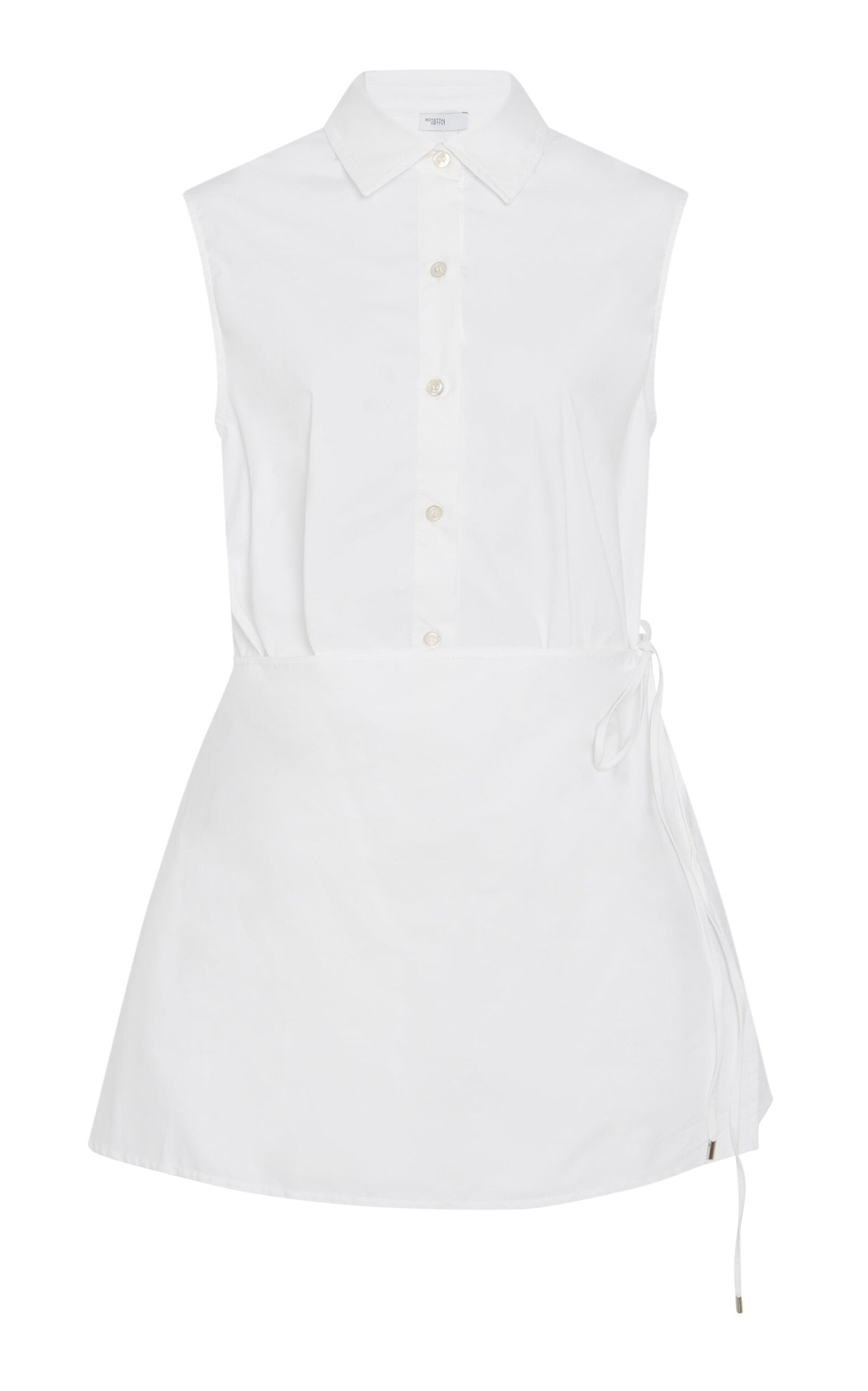 Rosetta Getty believes dressing should be effortless, so her basics are exceptionally versatile. Apron silhouettes are one of the elements that have come to define the Rosetta Getty brand. Spring 25's asymmetric style has a shorter length, offering versatile wear as a tunic, minidress, or longer top. Crafted of brand staple Stretch Cotton Poplin, it can be worn tied at the hip or left draped open for fluid movement. PRODUCT DETAILS - This item is not eligible for expedited shipping - Spring '25 - Button-front closure - Composition: 97% Cotton, 3% Elastane - Dry clean - Made in the USA SIZE & FIT - Designed for a regular fit