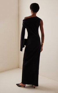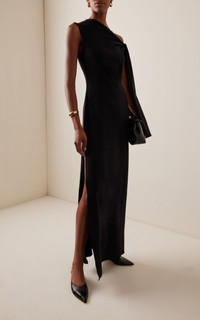 Rosetta Getty believes dressing should be effortless, so her basics are exceptionally versatile. Designed with a striking silhouette, Rosetta Getty’s maxi dress has a twisted neckline and a body-conscious fit with an elbow-length cape overlay that can be worn off-shoulder or wrapped around the neck. Crafted in beautiful icy cotton rib jersey—an inherently more casual material—it is incredibly versatile and can be dressed up or down. PRODUCT DETAILS - Not eligible for expedited shipping - Slip on - Composition: 100% cotton - Dry clean - Imported SIZE & FIT - Our model is wearing a size Small - Model is 5'10" with a 31" bust, 23.5" waist, and 33.5" hip