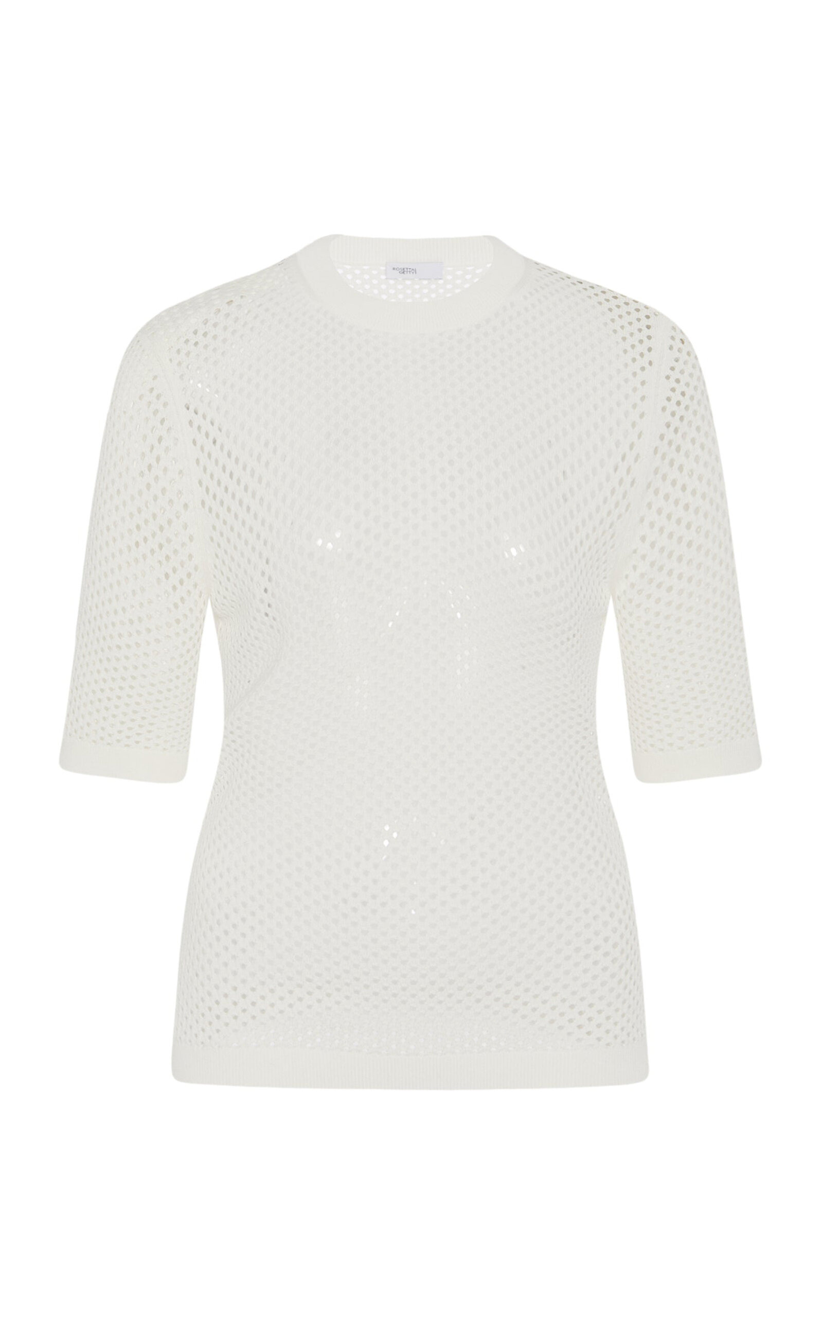 Rosetta Getty believes dressing should be effortless, so her basics are exceptionally versatile. A signature Rosetta Getty silhouette is reimagined for Spring 25 with a knitted open mesh finish. Showcasing a delicate feel, the style is transparent when worn independently but becomes opaque when layered beneath the coordinating cardigan. PRODUCT DETAILS - This item is not eligible for expedited shipping - Spring '25 - Slip on - Composition: 53% Cotton, 47% Acetate - Dry clean - Imported SIZE & FIT - Designed for a regular fit
