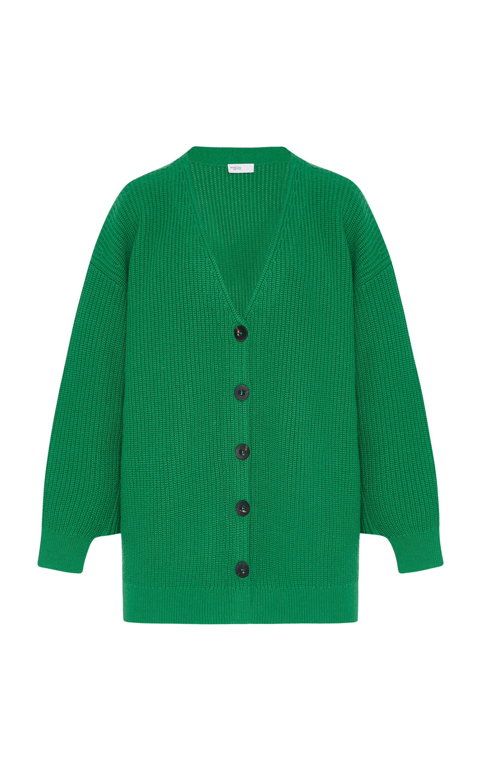 Rosetta Getty believes dressing should be effortless, so her basics are exceptionally versatile. Knit of soft mercerized wool cashmere, this staple cardigan silhouette is designed with an oversized fit and directional ribbing for structure and shape. Wing sleeves lend interest to the style, which features tonal buttons for a refined finish. PRODUCT DETAILS - This item is not eligible for expedited shipping - Resort '25 - Buttons at front - Composition: 70% wool, 30% cashmere - Dry clean - Imported SIZE & FIT - Our model is wearing a size Small - Model is 5'11" with a 31.5" bust, 23" waist, and 35" hip - Designed for a regular fit