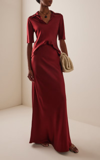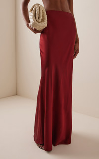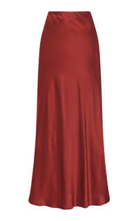 Rosetta Getty believes dressing should be effortless, so her basics are exceptionally versatile. A timeless staple, opulent Silk Satin elevates Rosetta Getty's Bias Maxi Skirt. The high-waist style flatters and elongates the silhouette with a slim shape that evolves on the bias to a slight flare hem. PRODUCT DETAILS - This item is not eligible for expedited shipping - Spring '25 - Concealed back zip closure - Composition: 100% Silk - Designer color: Berry - Dry clean - Made in the USA SIZE & FIT - Designed for a regular fit