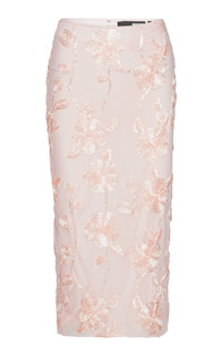 Floral-Appliquéd Mesh Midi Skirt light pink