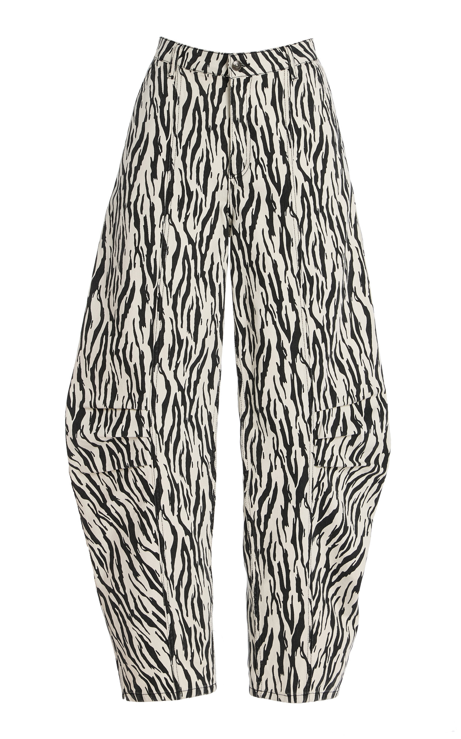 Throw on a party piece by Danish It girls Thora Valdimars and Jeanette Madsen, and you’re guaranteed to feel your oats—such is the power of their cool-girl glamour. Made from organic cotton twill with a zebra print, these cargo pants have wide legs that are ruched at the knee to create a tapered silhouette. Pair with the matching top. PRODUCT DETAILS - Pre-Fall '25 - Zip fastening - Composition: 100% organic cotton - Designer color: Egret - Dry clean - Imported SIZE & FIT - Our model is wearing a size EU 34 - Model is 5'9.5" with a 32" bust, 24" waist, and 35.5" hip - Designed for a relaxed fit