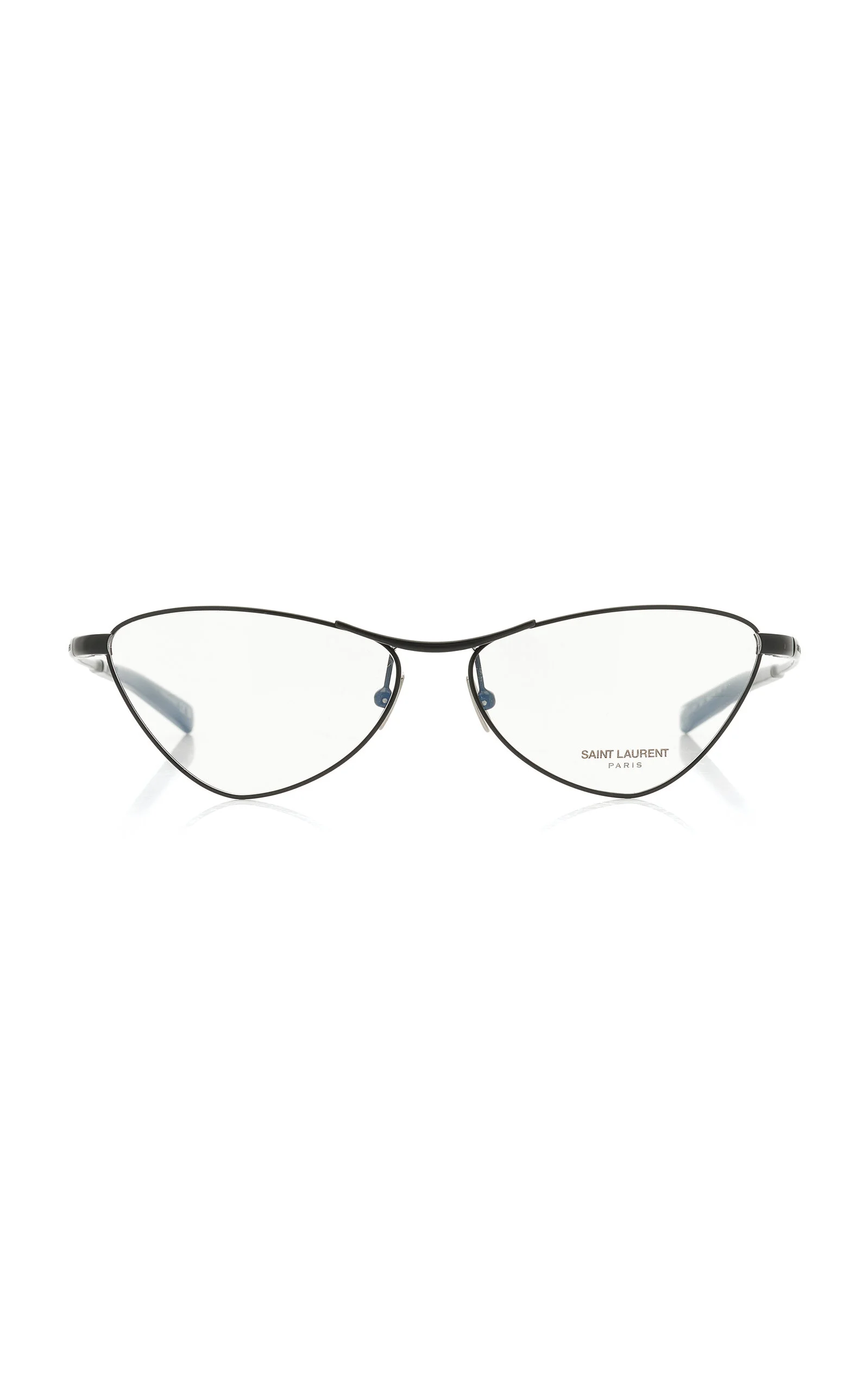 As bold and timeless as its ready-to-wear, Saint Laurent's eyewear has been seen on the world's most stylish, like Hailey Bieber and Zoe Kravitz. These glasses have cat-eye frames made from lightweight metal with acetate-tipped arms for comfort. PRODUCT DETAILS - Composition: metal - Made in Italy
