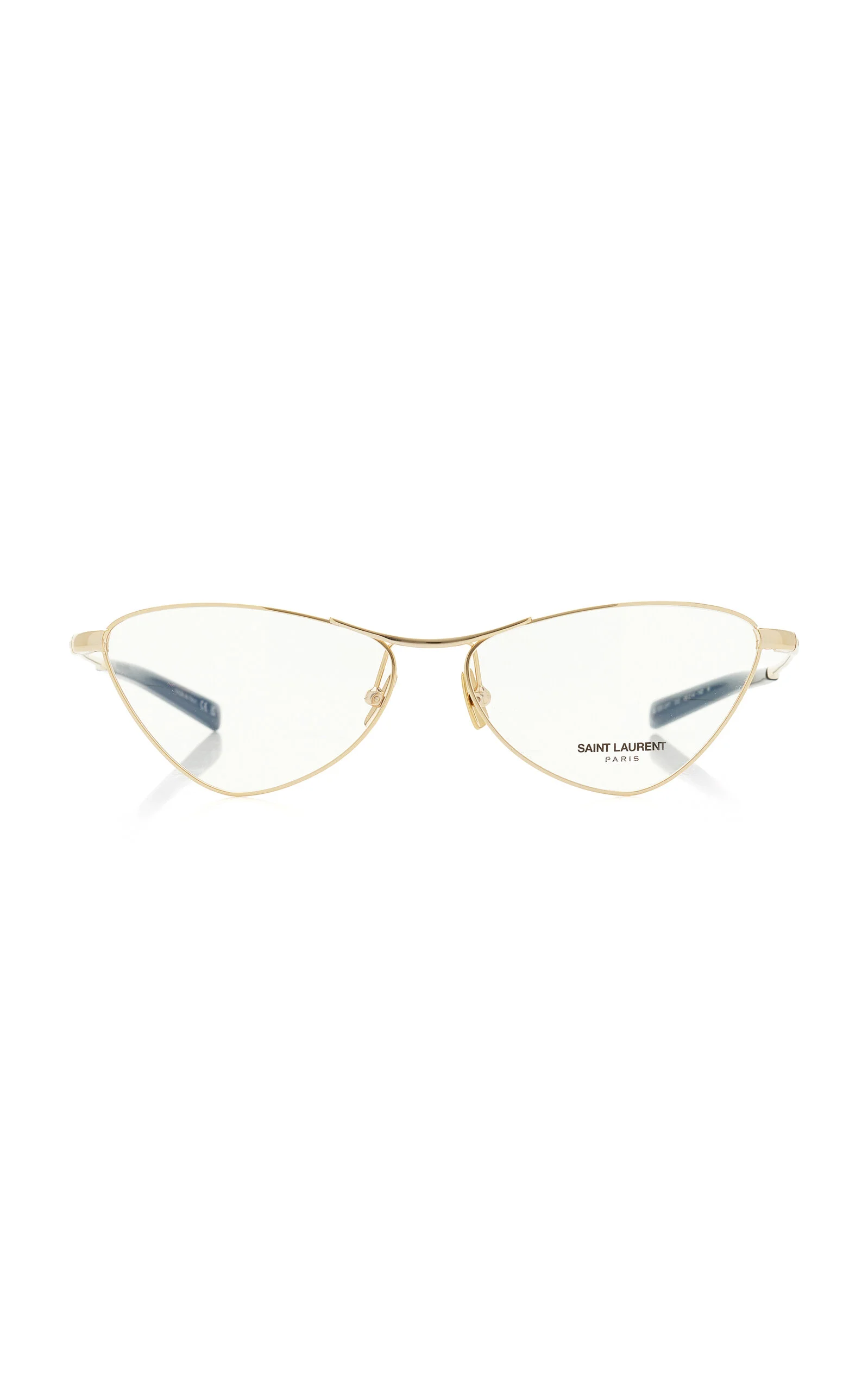 As bold and timeless as its ready-to-wear, Saint Laurent's eyewear has been seen on the world's most stylish, like Hailey Bieber and Zoe Kravitz. These glasses have cat-eye frames made from lightweight metal with acetate-tipped arms for comfort. PRODUCT DETAILS - Composition: metal - Made in Italy