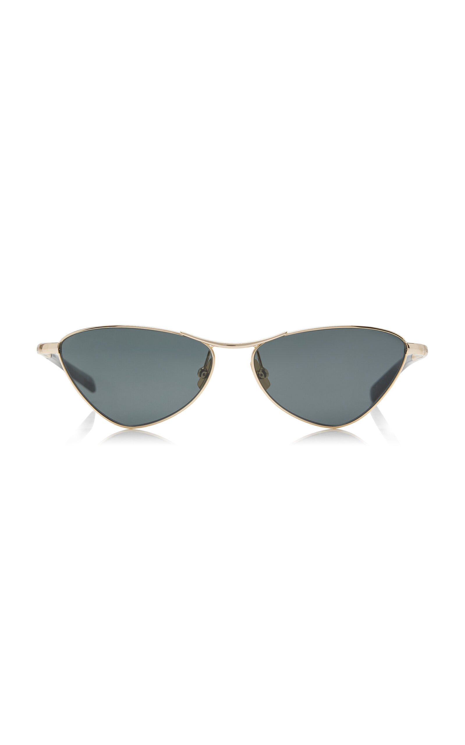 As bold and timeless as its ready-to-wear, Saint Laurent's eyewear has been seen on the world's most stylish, like Hailey Bieber and Zoe Kravitz. These sunglasses have geometric D frames made from lightweight gold metal with black lenses and the house's moniker engraved at the temples. PRODUCT DETAILS - Composition: metal - 100% UVA/UVB protection - Made in Italy