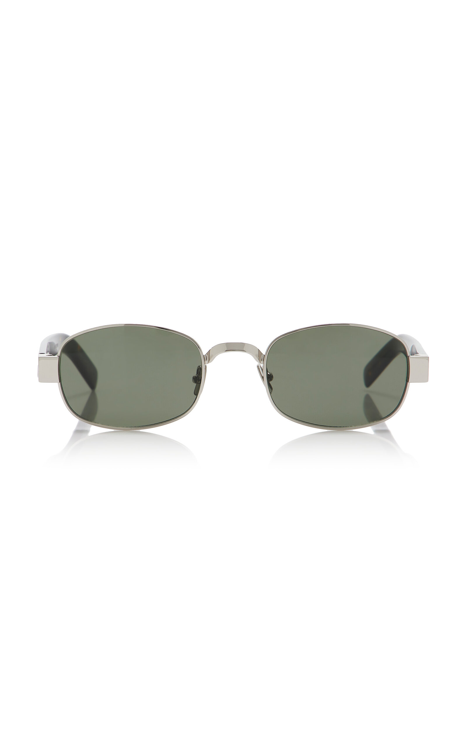 As bold and timeless as its ready-to-wear, Saint Laurent's sunglasses have been seen on the world's most stylish, like Hailey Bieber and Zoe Kravitz. This pair has been made in Italy from polished silver-tone metal into round frames that work best with angular faces. The thick acetate temples are lightweight and comfortable. PRODUCT DETAILS - Composition: metal - 100% UVA/UVB protection - Designer color: Havana - Made in Italy