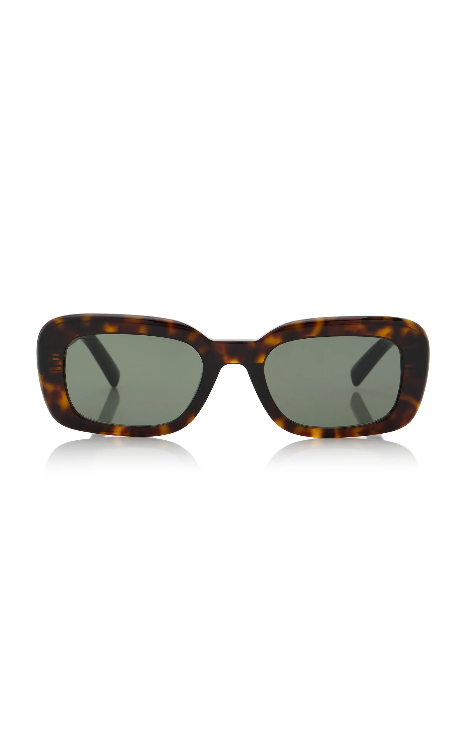 As bold and timeless as its ready-to-wear, Saint Laurent's eyewear has been seen on the world's most stylish, like Hailey Bieber and Zoe Kravitz. This pair has pillowed rectangular frames made from tortoiseshell acetate fitted with nylon lenses. PRODUCT DETAILS - Composition: recycled acetate - Designer color: Havana - 100% UVA/UVB protection - Made in Italy SIZE & FIT - Lens: 53mm/ 2" - Bridge: 21mm/ 0.8" - Temple: 140mm/ 5.5"