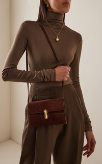 Savette's handcrafted designs are heritage craftsmanship in modern form. The Symmetry collection celebrates geometry in its purest forms. Elegant and pared back, this mini bag is made from calfskin suede with a signature Symmetry turnlock, one interior pocket, and a top handle. PRODUCT DETAILS - Turn-lock fastening - Composition: suede - Designer color: Espresso - Made in Italy