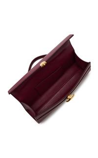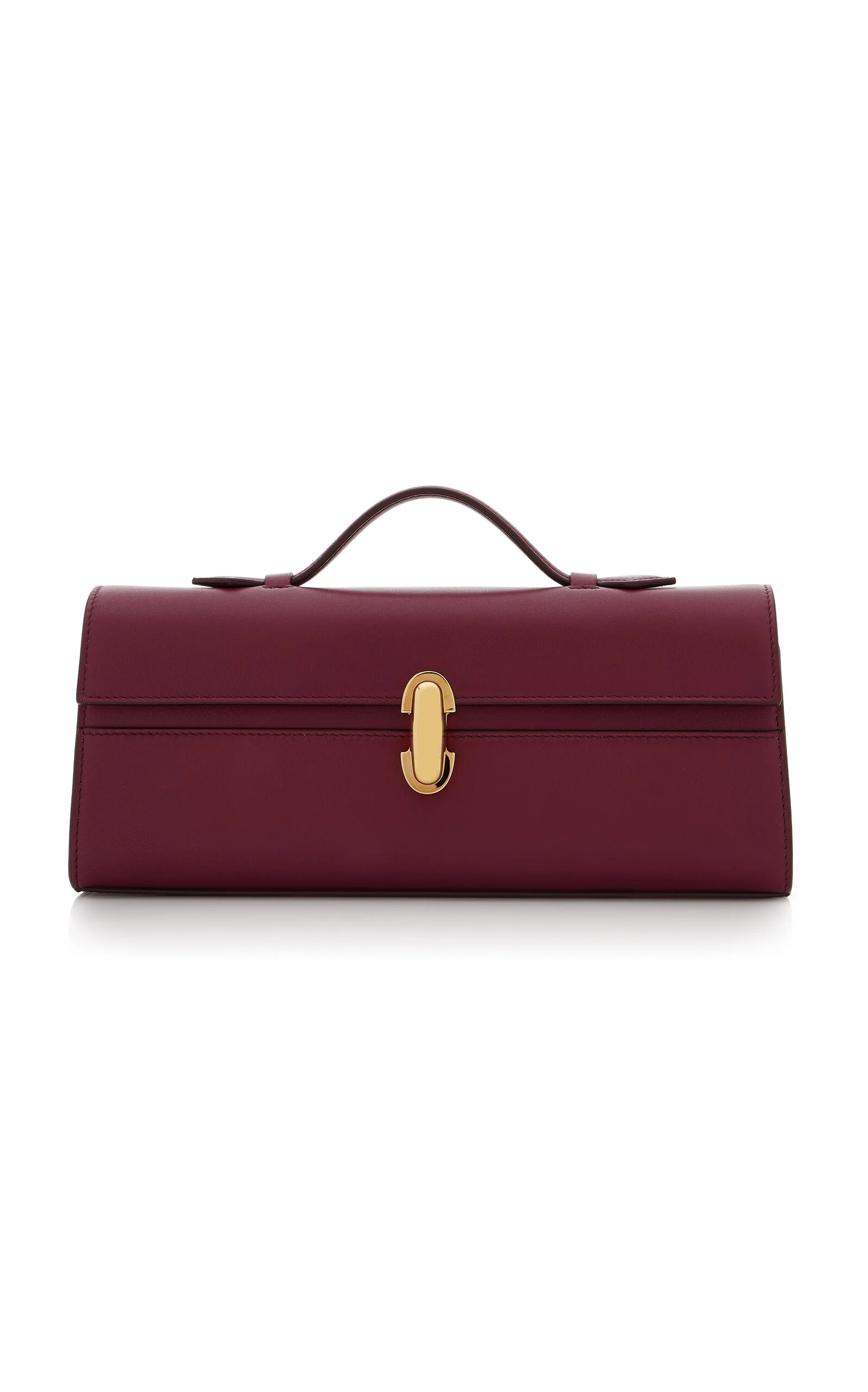 Savette's handcrafted designs are heritage craftsmanship in modern form. The Symmetry collection celebrates geometry in its purest forms. Elegant and pared back, the pochette is made from smooth leather with a signature Symmetry turnlock, one interior pocket, and a leather handle. PRODUCT DETAILS - Turn-lock fastening - Composition: calf leather - Designer color: Plum - Made in Italy