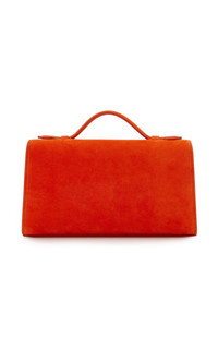 Savette's handcrafted designs are heritage craftsmanship in modern form. The Symmetry collection celebrates geometry in its purest forms. Elegant and pared back, the pochette is made from suede with a signature Symmetry turnlock, one interior pocket, and a leather handle. PRODUCT DETAILS - Turn-lock fastening - Composition: suede - Designer color: Tangerine - Made in Italy