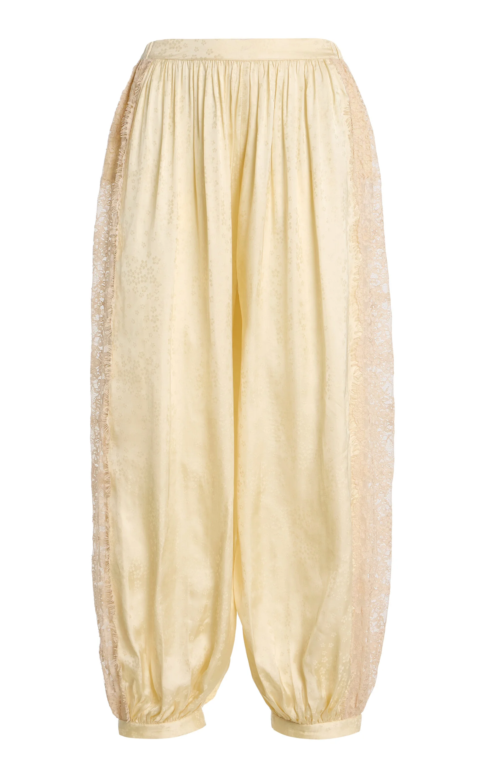 NYC-based Monica Paolini and Sean Monahan dream up pieces that resemble the perfect vintage find—and this season, they lean into their signature cool folksy-femininity. The Ethel bloomer pants feature a delicate floral motif with intricate lace inserts and an elasticized waistband for a comfortable fit. They pair effortlessly with the Ethel camisole, creating a cohesive and feminine ensemble. PRODUCT DETAILS - Spring '26 - Pull on - Composition: 100% viscose; Lace: 100% nylon - Designer color: Butter - Dry clean - Imported