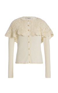 Nara Crochet-Trimmed Wool Cardigan ivory