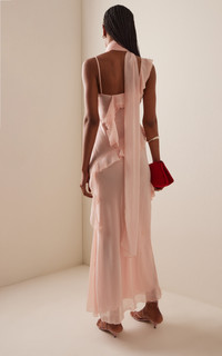 Exclusive Monica Scarf-Neck Ruffled Georgette Maxi Dress light pink