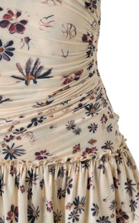 PRODUCT DETAILS - Pre-Fall '25 - Floral-printed, sleeveless, ruched, ruffled mini hem - Unlined - Composition: 90% Polyester 10% Elastane - Slip on - *Dry clean or machine wash - Made in Turkey