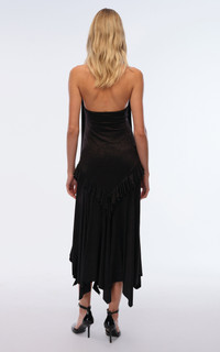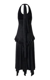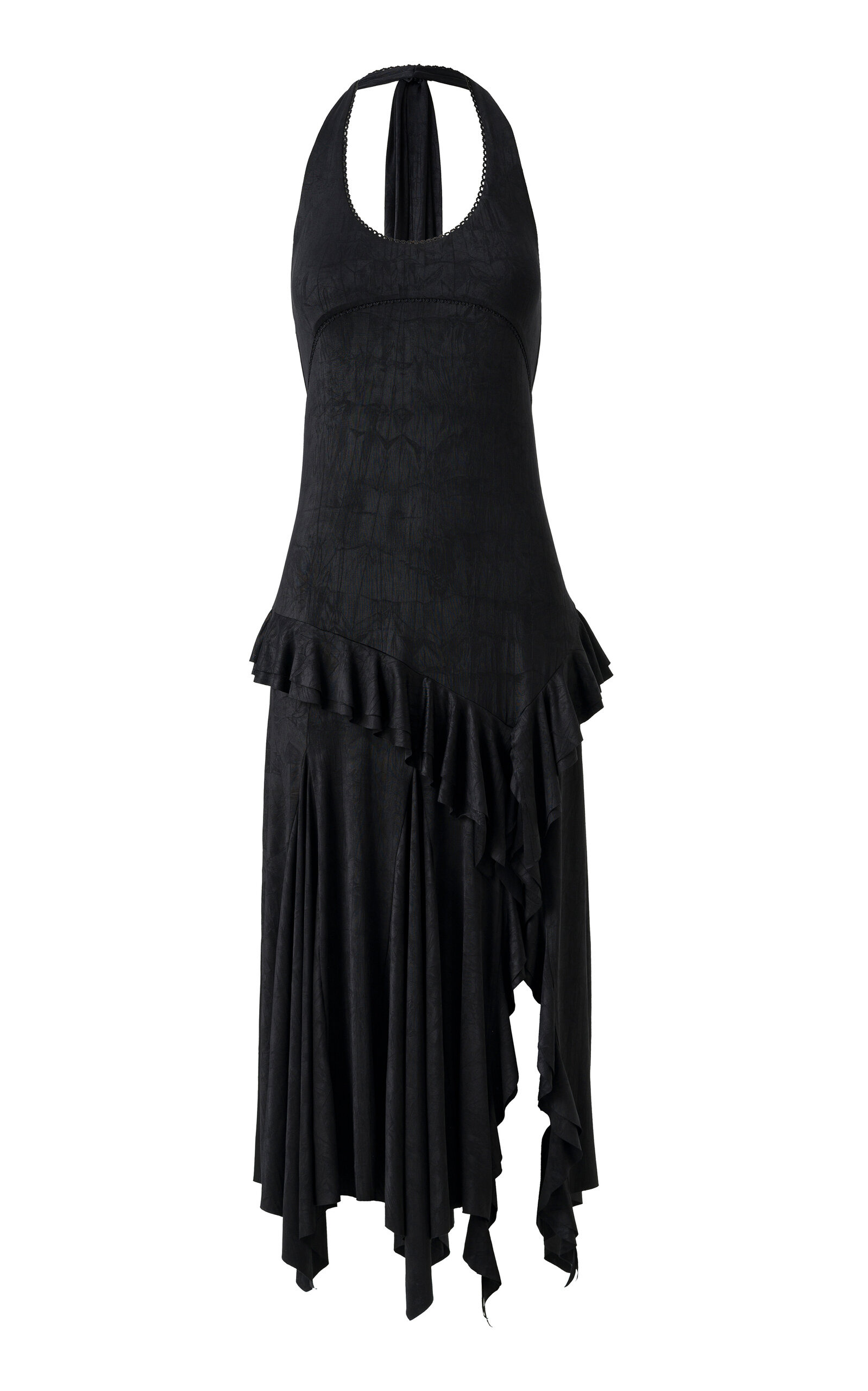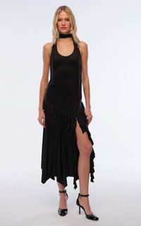 PRODUCT DETAILS - Pre-Fall '25 - Halterneck, ruffled, midi hem, front slit - Unlined - Composition: 90% Polyester 10% Elastane - Slip on - *Dry clean or machine wash - Made in Turkey