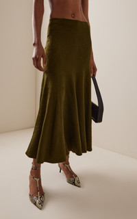 The Colombian designer crafts whimsical and feminine pieces that are imbued with unique stories rooted in her Latin upbringing. The label crafts this ‘Gilda’ skirt from a floral jacquard-knit, designed to match this season’s ‘Gen’ top. It sits closely on the waist and hips with a flared fit through the leg. PRODUCT DETAILS - Fall/Winter ‘25 - Slip on - Composition: 90% viscose, 7% polyester, 3% elastane - Dry clean - Designer Color: Hunter Green - Made in Colombia