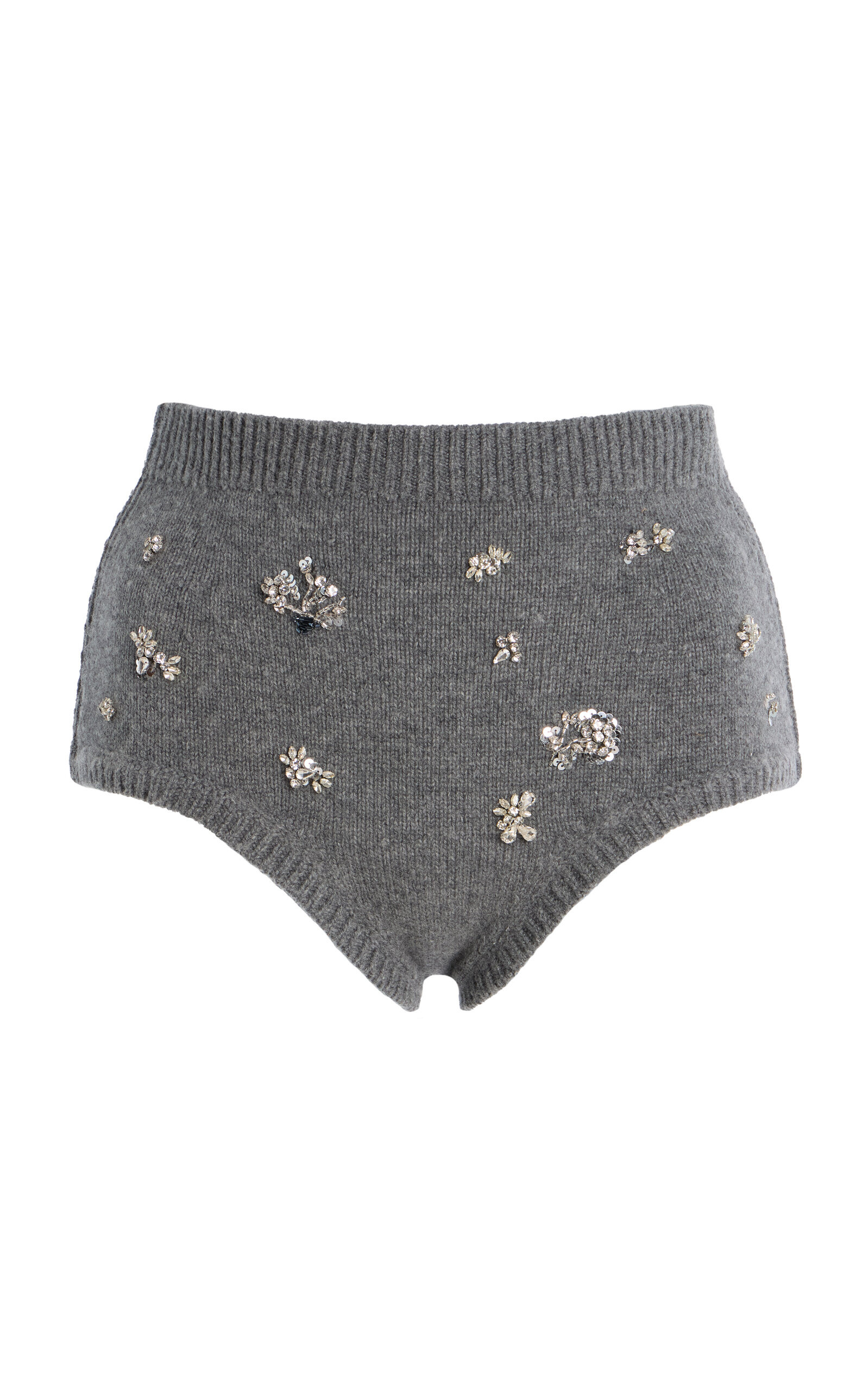 PRODUCT DETAILS - Slim fit, mid rise, floral printed detailing throughout, mini shorts - Pull Over - Fully Lined - Composition: 90% Wool 10% Cashmere - Color: black - Dry Clean Only - Fall-Winter '25