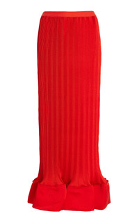 Hollis Crinkled Satin Midi Skirt red