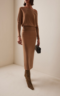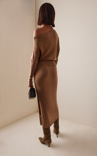 Janese Off-The-Shoulder Wool Midi Dress tan