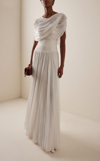 Nancie Cape-effect Draped Pleated Jersey Maxi Dress