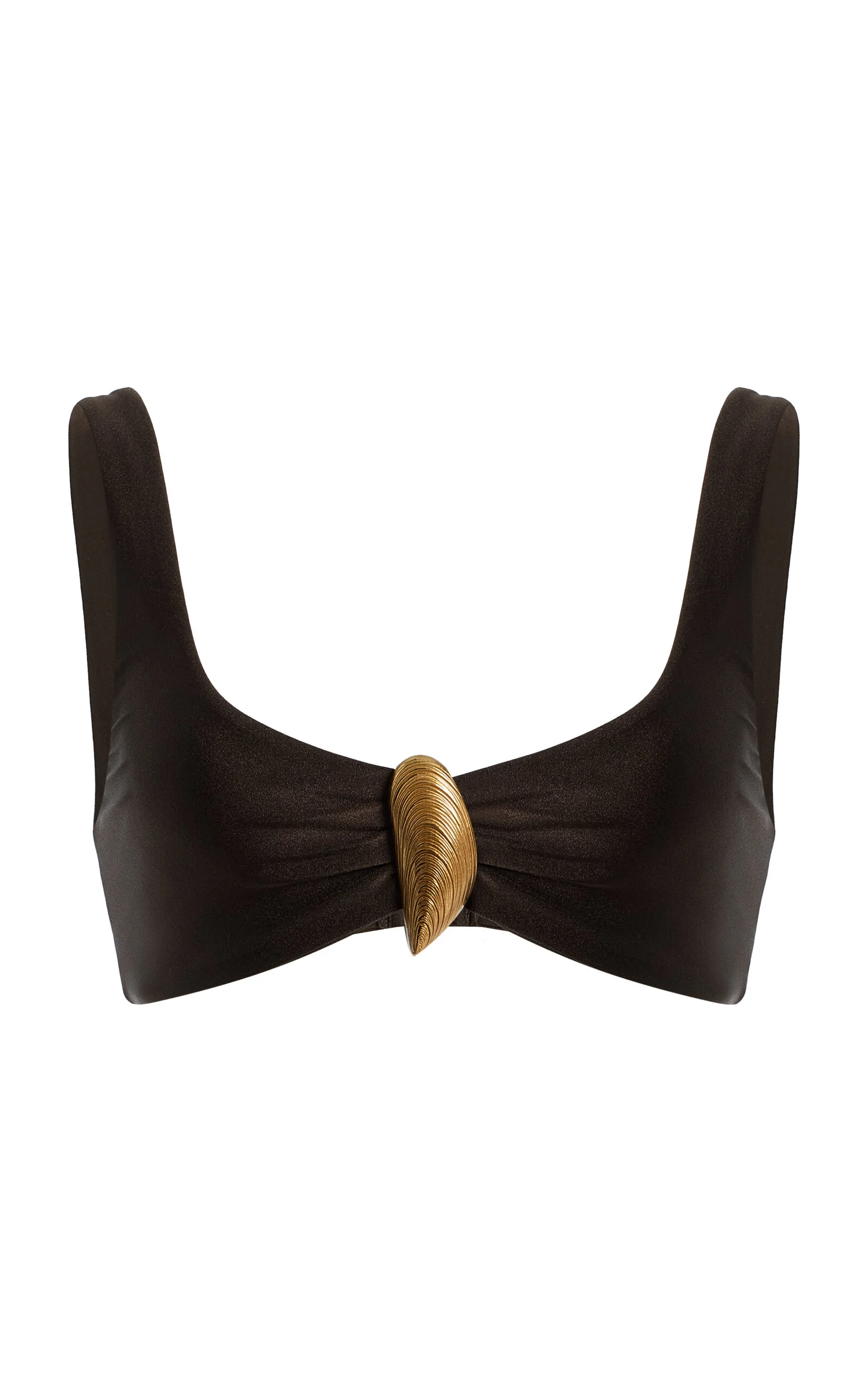 Founded in 2010 by designer Jonathan Simkhai, the studio takes inspiration from architects and sculptors alike, blending progressive construction techniques with intimate hand-detailing to create truly special garments. Designed as a sleek bikini top, the Veyra style features a sculptural shell detail at the center and a supportive, streamlined silhouette rendered in a rich chocolate hue. Complete the set with the matching bottom. PRODUCT DETAILS - Spring Summer '26 - Shell-detail bikini top - Composition: 80% nylon, 20% spandex; lining: 80% polyamide, 20% spandex - Hand wash - Imported SIZE & FIT - Our model is wearing a size Small - Our model is 5'11" with a 31.5" bust, 23" waist, and 35" hip
