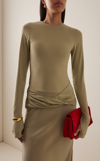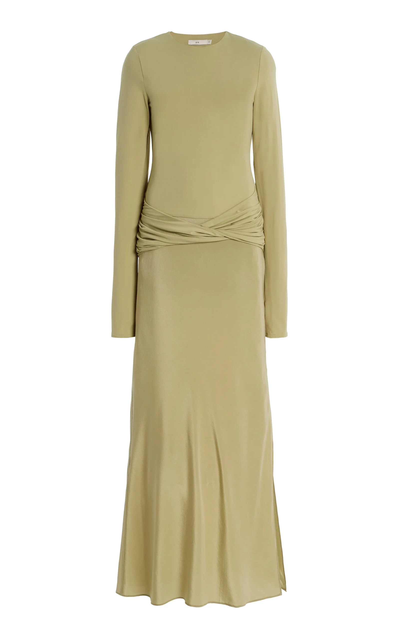 With a shared love of ‘70s style codes, friends and co-founders Nikki Campbell and Sophie Coote launched SIR (or Separates, Intimates, and Ready-to-Wear) to craft the pieces they want to see in their own wardrobes. Featuring a jersey bodice, the 'Milesi' falls to a silky satin skirt topped with a twisted panel at the waist. PRODUCT DETAILS - Fall '25 - Zip fastening - Composition: 87% nylon, 13% spandex; Detail: 70% viscose, 30% silk - Designer color: Moss - Dry clean - Imported