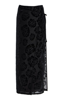 Vittoria stretch devoré-velvet midi wrap skirt Black