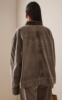 Louise and Gary Edgley founded SLVRLAKE to provide denim lovers with premium options designed with California's effortless sensibilities. Inspired by classic workwear, the 'Casey' jacket has a boxy fit made from washed cotton canvas with a corduroy collar. PRODUCT DETAILS - Fall '25 - Zip fastening - Composition: 100% organic cotton - Designer color: Dirty Olive - Machine wash - Imported SIZE & FIT - Our model is wearing a size Small - Model is 5'10" with a 30" bust, 24" waist, and 34" hip