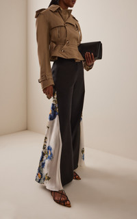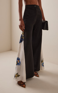 The emerging talent (and a favorite of Harry Styles) evolves the heritage pieces that define British fashion into sleek yet playful standouts. 'Audrey' is a high-cut, wide-leg trouser tailored from suiting wool. They're inset with silk satin featuring a floral needlepoint print that pays homage to Constance Spry, the British educator and society florist whose work inspired the admired floral paintings by the British painter Gluck. PRODUCT DETAILS - Spring '25 - Zip fastening - Composition: 100% wool; Detail: 100% silk - Dry clean - Made in Portugal