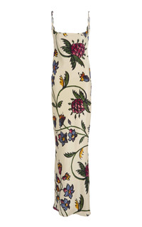 For Fall '25, the emerging talent (and a favorite of Harry Styles) evolves the heritage pieces that define British fashion into sleek yet playful standouts. The 'Willow' column maxi dress is cut in a lightweight fluid satin. It features a floor length figure-hugging silhouette and a flattering scooped neckline with delicate spaghetti straps. PRODUCT DETAILS - Fall '25 - Zip fastening at back - Composition: 100% viscose - Dry clean - Made in Portugal SIZE & FIT - Our model is wearing a size UK 6 - Model is 5'9" with a 32" bust, 24" waist, and 35" hip