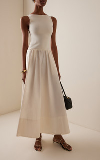 Exclusive Knit and Cotton Maxi Dress ivory