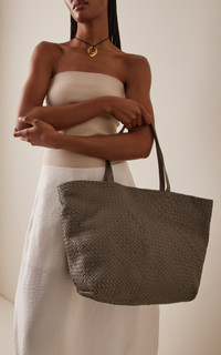 The Bryon Bay label crafts handwoven leather shoes and accessories with a ‘less is more’ approach that sets the foundation for a minimalist uniform with functionality at its core. Made just for us, this tote has a generous trapeze silhouette crafted from woven leather with a suede lining. PRODUCT DETAILS - Magnetic fastening - Composition: leather - Designer color: Slate - Imported