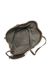 Exclusive Large Woven Leather Trapeze Tote Bag grey
